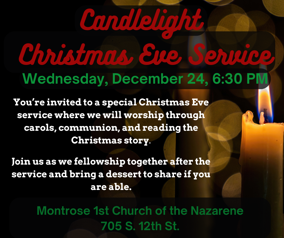 Candlelight Christmas Eve Service Wednesday, Dec. 24, 6:30